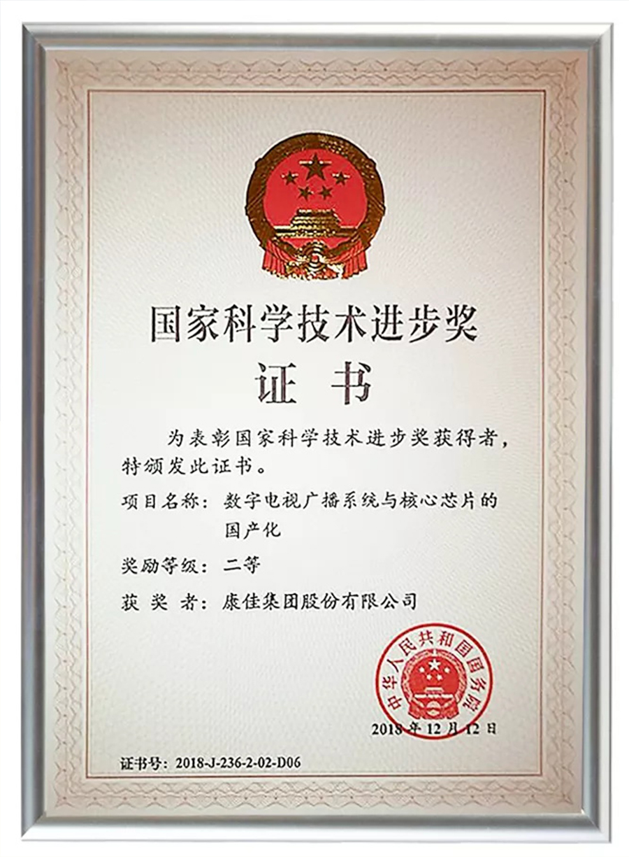 同時,康佳的半導體業務也是我國芯片自主化道路上的中堅力量。憑借《數字電視廣播系統與核心芯片的國產化》項目,康佳榮獲了2018“國家科技進步獎”這一至高榮譽,并與劉永坦、錢七虎等知名院士站在了同一領獎臺。這一成果不僅對國產核心芯片設計完善起到重要作用,而且為實現中國自主數字電視核心芯片產業化、解決核心技術上被國外“卡脖子”問題做出重要貢獻。