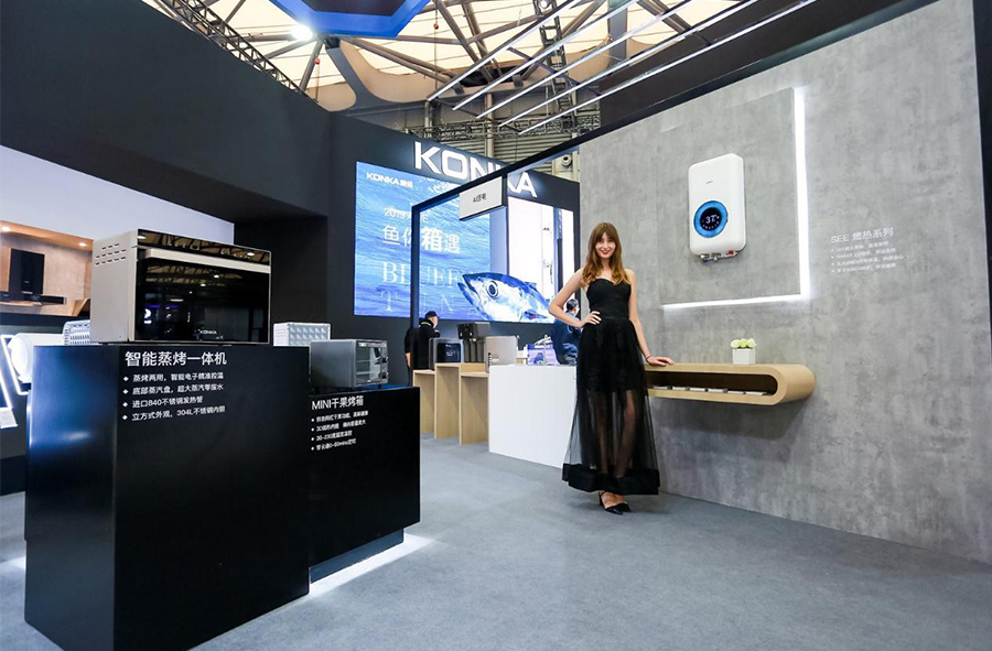 智能家電產(chǎn)品方面,憑借頂側(cè)同吸90°、電動升降煙機等優(yōu)勢的康佳90°吸油煙機,同樣成為AWE焦點之一。