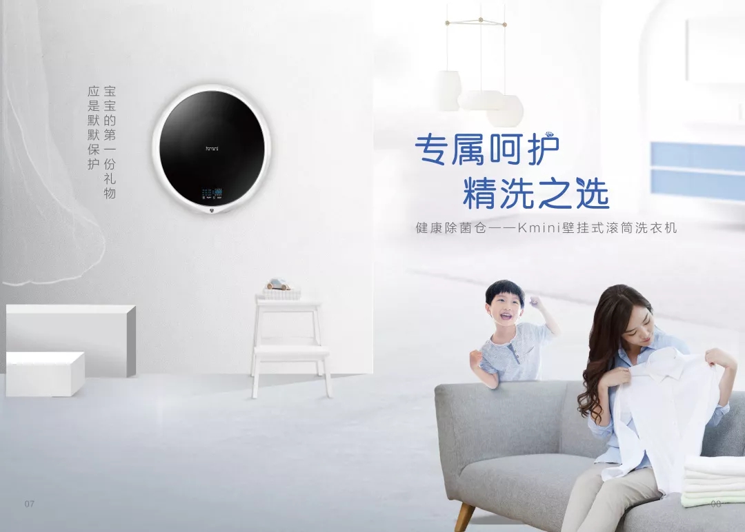 ? 2019年Kmini洗衣機又針對提高家庭空間展開了專題研究,推出Kmini ?XQG32-BDH199 母嬰掛壁滾筒洗衣機,又稱“健康除菌倉”。Kmini壁掛式滾筒洗衣機具有專屬呵護、智能便捷、極致節(jié)省、健康洗護、精工設計五大特點,支持高溫煮洗、內(nèi)衣、嬰兒洗、空氣洗,烘干等多種功能,繼承了壁掛式設計占用空間少、使用方便的優(yōu)勢,同時,進一步升級高溫除菌和分時洗地功能,優(yōu)化人機交互界面和外觀設計,能夠給母嬰衣物提供安全洗衣環(huán)境,有效避免交叉感染。