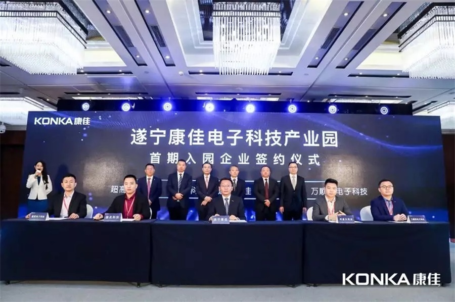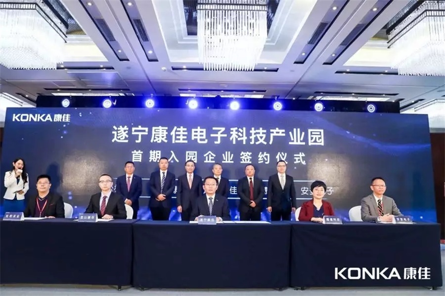 2019年10月28日上午,遂寧康佳電子科技產業園首期入園企業簽約儀式在遂寧舉行。遂寧市政府副市長陳伐、遂寧經濟技術開發區黨工委副書記、管委會主任李擁軍及市區相關部門負責人、集團聯席副總裁林洪藩、遂寧康佳產業園區開發有限公司總經理翁居榮、12家簽約企業和其他30家意向企業共同出席了本次簽約儀式。