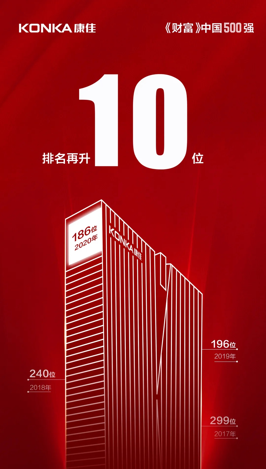 7月27日,《財富》雜志公布中國500強企業最新排行榜,康佳集團位列186名,排名相比去年提升10位。自發布轉型升級以來,康佳憑借穩健向好的業績和發展前景,實現排名連續攀升,這是外界對康佳持續以“半導體+新消費電子+科技園區”為核心產業主線,全力推進高質量發展的實力認可。