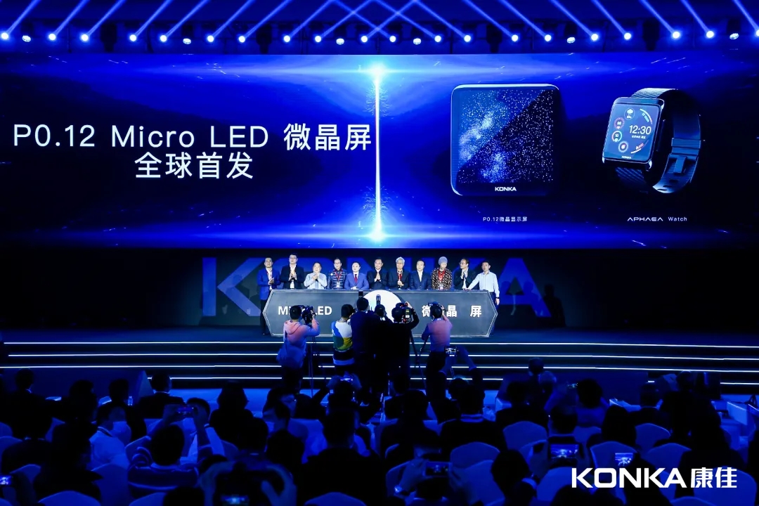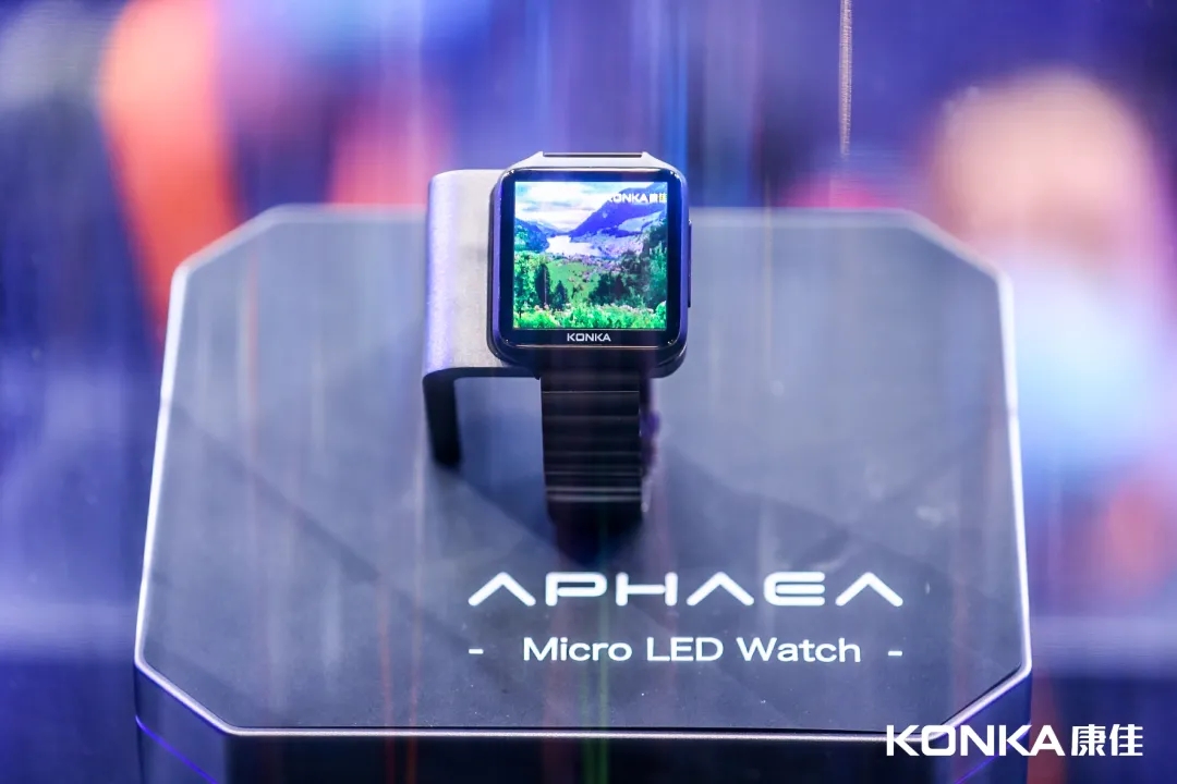 本次發布會上,康佳集團正式發布Micro LED手表APHAEA Watch,其搭載的P0.12 AM-LTPS Micro LED微晶屏,點間距縮小至0.12mm,具備百萬級超高對比度和高達1500nits的屏幕亮度,能夠呈現更加細膩真實的色彩細節,依托重慶康佳光電技術研究院自主HMT技術,實現多種產品形態,開辟更加多樣化的使用場景。